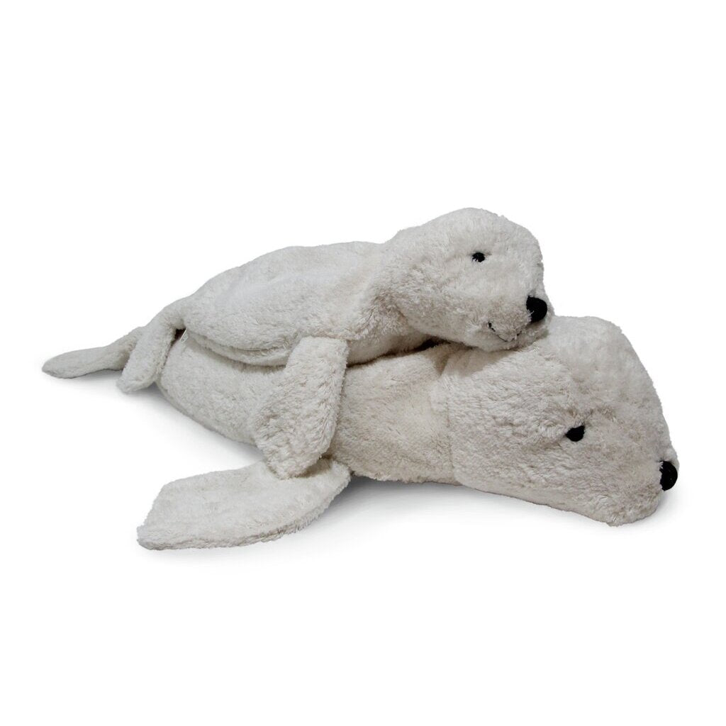 Handmade in Germany by Senger Naturwelt, this cuddly seal doubles as a gentle warming pillow. The head and feet are filled with lamb wool and the outer layer is made with organically grown cotton. The tummy features a removable bag filled with natural spelt or grape seeds. The bag can be warmed up in the oven at low temperature (do not microwave) or put it in the freezer to cool special parts of your body.